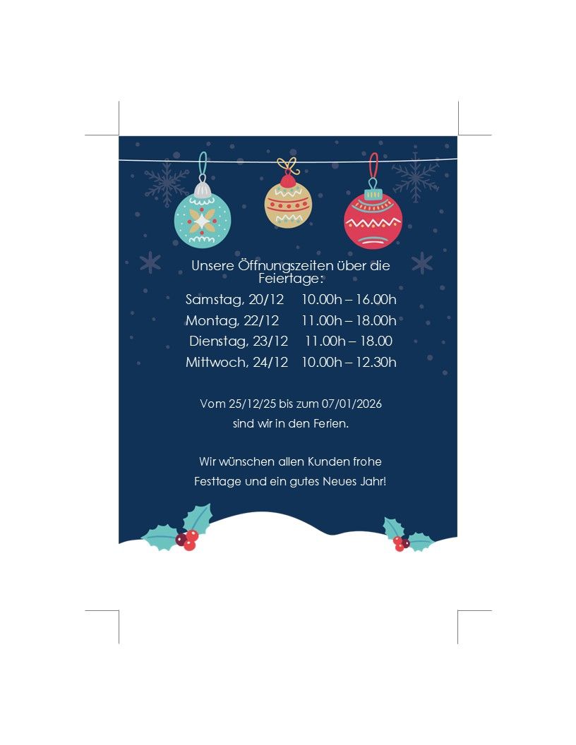 Montag - Freitag 11.00h - 18.00h Uhr, Samstag 10.00h - 13.30h